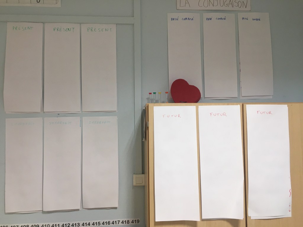 Au moment, où la leçon sera abordée alors je viendrai enlever la feuille blanche pour faire découvrir le savoir de l’affiche le temps qu’il faudra.